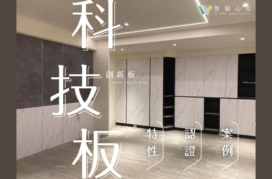 科技板(創新板)是什麼? 科技板也叫做創新板,科技板(創新板)基材為木心板,表面為美耐皿。基材為木心板,密度高、結構支撐強度大。材重量輕,比塑合板輕約35%,可以做組件輕量化,遇到吊櫃、層板安全性增加,師傅好安裝,施工快速,減少工時。亦可使用系統櫃硬體設備做加工,科技板(創新板)木芯板與塑合板系統櫃做結合。例如:桶身木心板,門片塑合板。